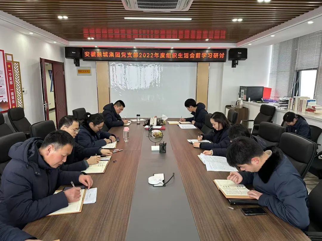 為學(xué)習(xí)貫徹黨的二十大精神,全面貫徹習(xí)近平新時(shí)代中國(guó)特色社會(huì)主義思想,確保2022年度組織生活會(huì)開(kāi)出高質(zhì)量、取得好效果, 根據(jù)中共界首市委組織部《關(guān)于召開(kāi)2022年度基層黨組織組織生活會(huì)和開(kāi)展民主評(píng)議黨員的通知》(界組〔2023〕2號(hào))要求,近日,安徽融城集團(tuán)黨支部召開(kāi)2022年度組織生活會(huì)會(huì)前學(xué)習(xí)研討會(huì),支部全體黨員、入黨積極分子參加會(huì)議。